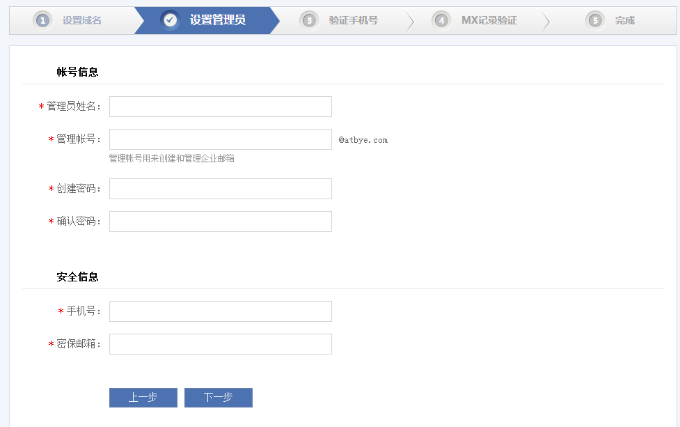 登录管理平台后,需要先进行实名认证服务,根据页面提示信息填写相关资料进行提交,这里需要说明的是只有当您的实名认证资料通过后,才可以进行下一步的MX验证服务。