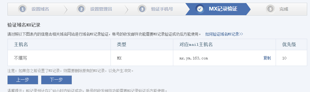 步骤4:MX记录验证(需登录域名管理界面设置)