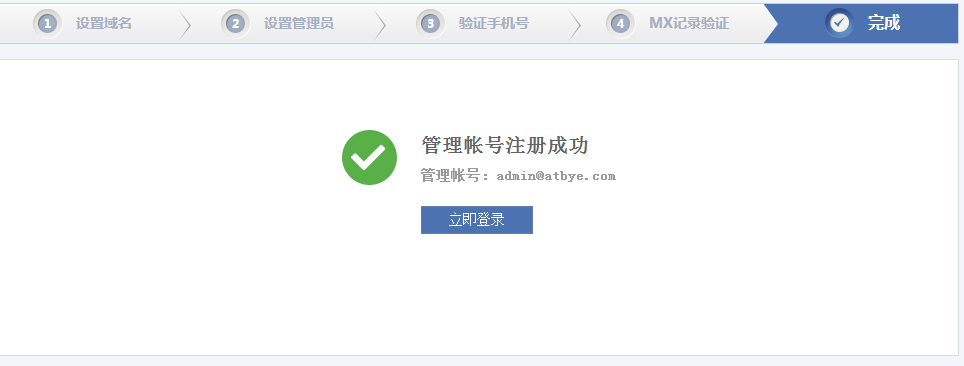 您可以先进行MX记录设置,再登录管理平台,为了保证此页面不过期,建议您先点击登录按钮,再去进行MX记录设置。点击登录后,系统会自动将您步骤4中输入的管理员帐号,代入登录页面的帐号输入框,建议您选择“记住用户名”以方便使用。