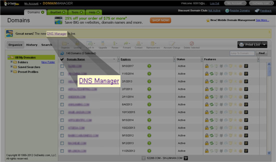 第三步: 打开域名管理界面,点击右上方“DNS Manager”: