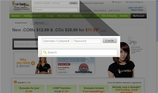 第一步:打开 http://www.godaddy.com/ ,,输入域名、密码和验证码,点击“登录”: