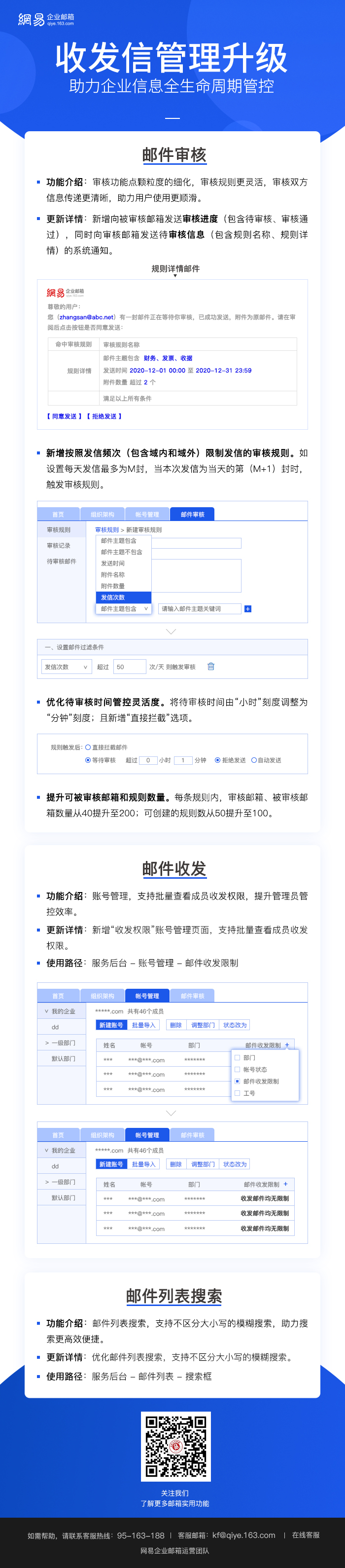网易企业邮箱收发信管理升级:批量设置员工收发信权限,提高管理员工作效率;