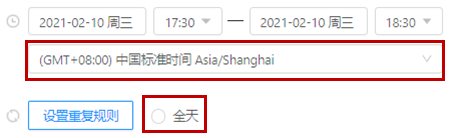 2、【新增】新建/编辑非全天日程时,可选择对应时区。不同地区增加会议邀请时,无需手动计算时间差异。